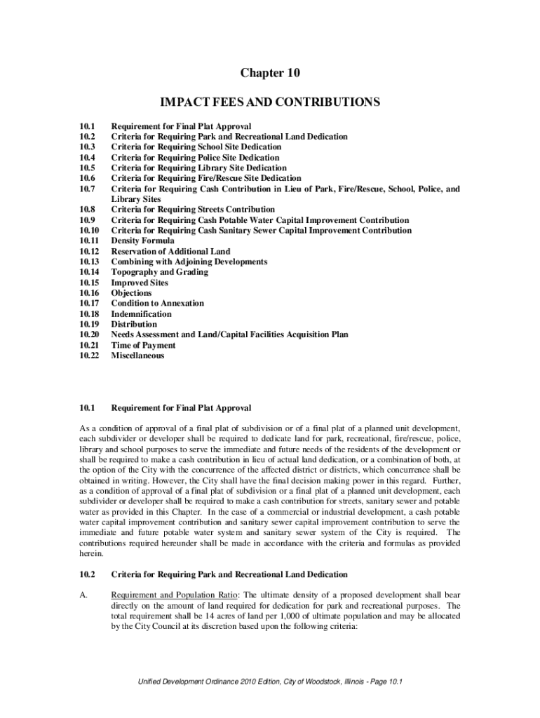 Chapter 10 IMPACT FEES AND CONTRIBUTIONS 10.1 10.2 10.3 10.4 10.5 10.6 10.7 10.8 10.9 10.10 10.11 10.12 10.13 10.14 10.15 10.16 10.17 10.18 10.19 10.20 10.21 10.22Requirement for Final Plat Approval