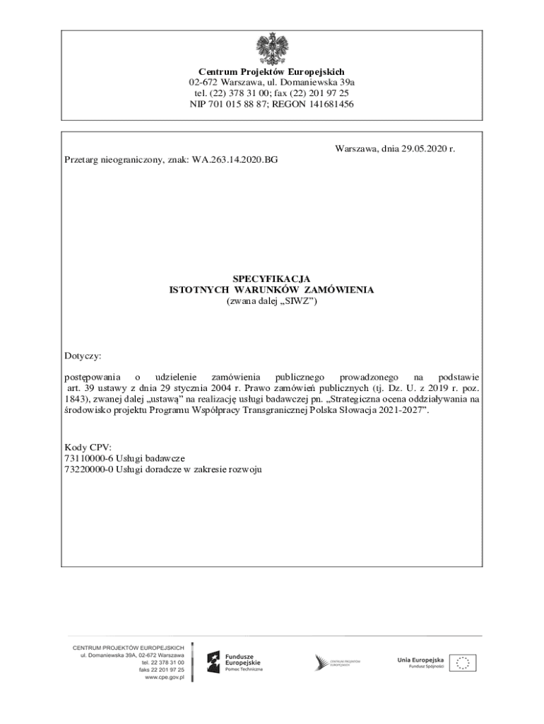 NIP 701 015 88 87; REGION 141681456Warszawa, Dina 29.05.2020 r.
