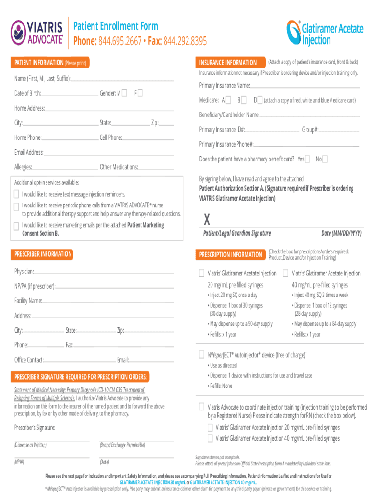 Get the free Patient Enrollment Form - Viatris Advocate