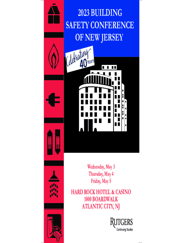 2023 BUILDING SAFETY CONFERENCE OF NEW JERSEY Wednesday, May 3 Thursday, May 4 Friday, May 5HARD ROCK HOTEL & CASINO 1000 BOARDWALK ATLANTIC CITY, Special Event Open to PublicBuilding Safety Conference