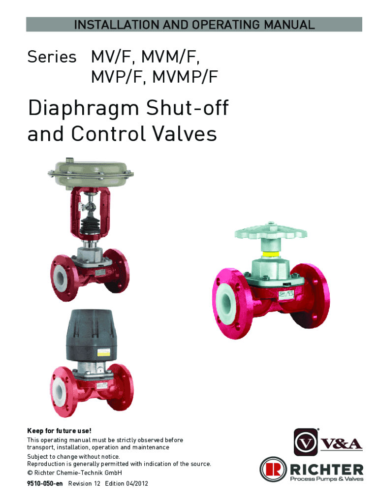 Get the free Richter MVMP/F Series Diaphragm Valves with Actuator User ...