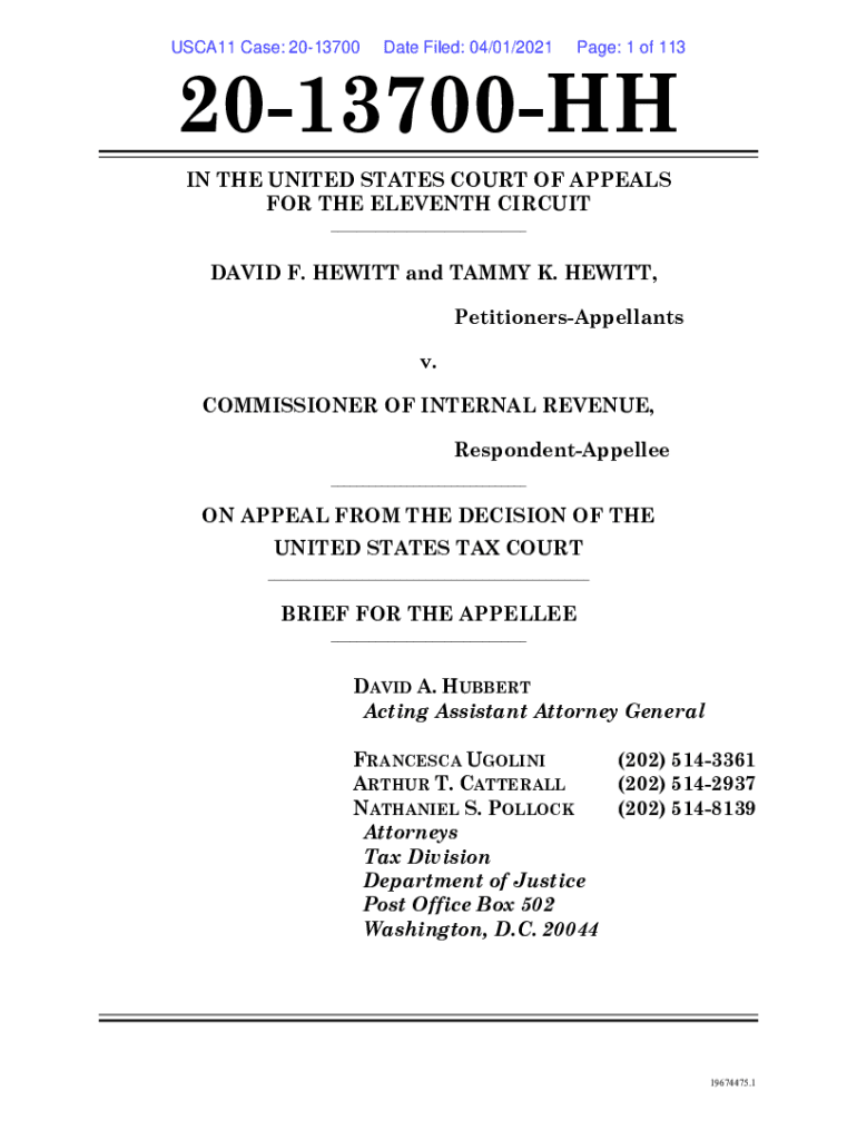 USCA11 Case: 2013700Date Filed: 04/01/2021Page: 1 of 1132013700HH IN THE UNITED STATES COURT OF APPEALS FOR THE ELEVENTH CIRCUIT ___DAVID F. HEWITT and TAMMY K. HEWITT, PetitionersAppellants v. COMMISSIONER