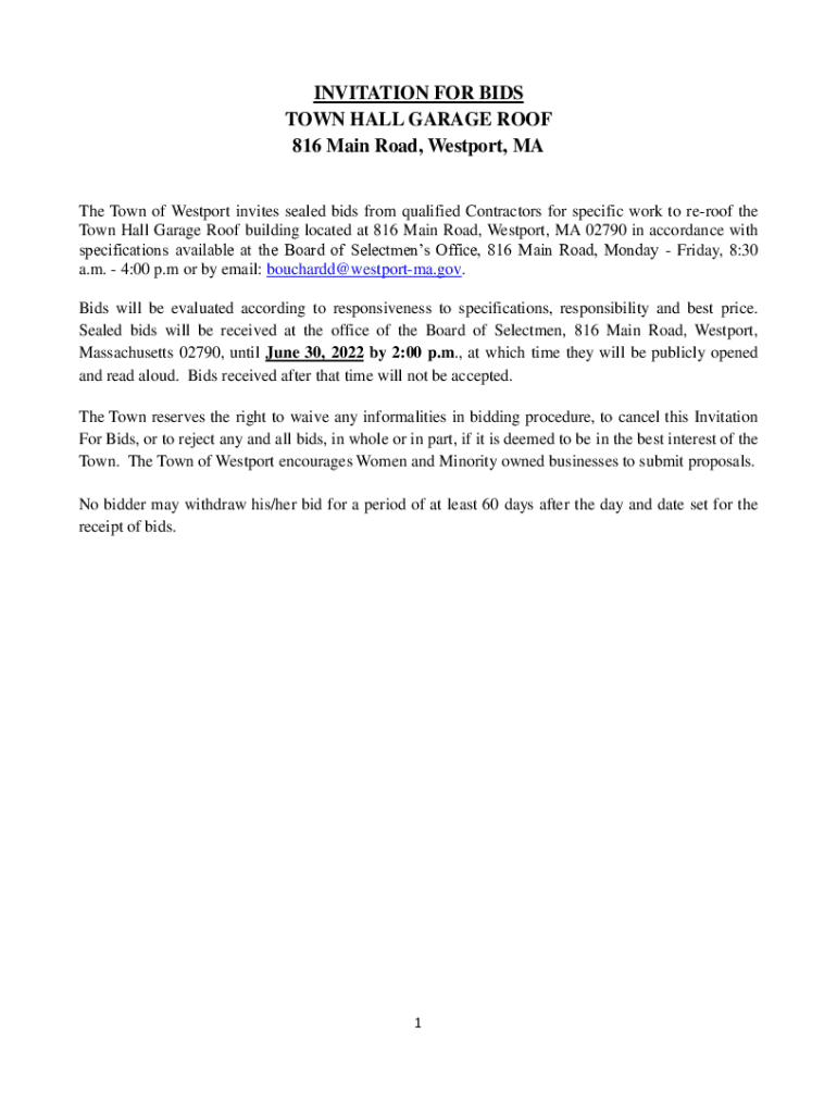 Get the free INVITATION FOR BIDS TOWN HALL GARAGE ROOF 816 Main ...