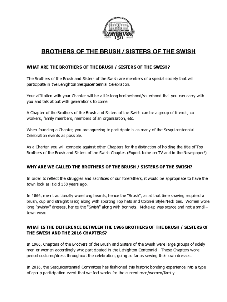 BROTHERS OF THE BRUSH / SISTERS OF THE SWISH WHAT ARE THE BROTHERS OF THE BRUSH / SISTERS OF THE SWISH? The Brothers of the Brush and Sisters of the Swish are members of a special society that will