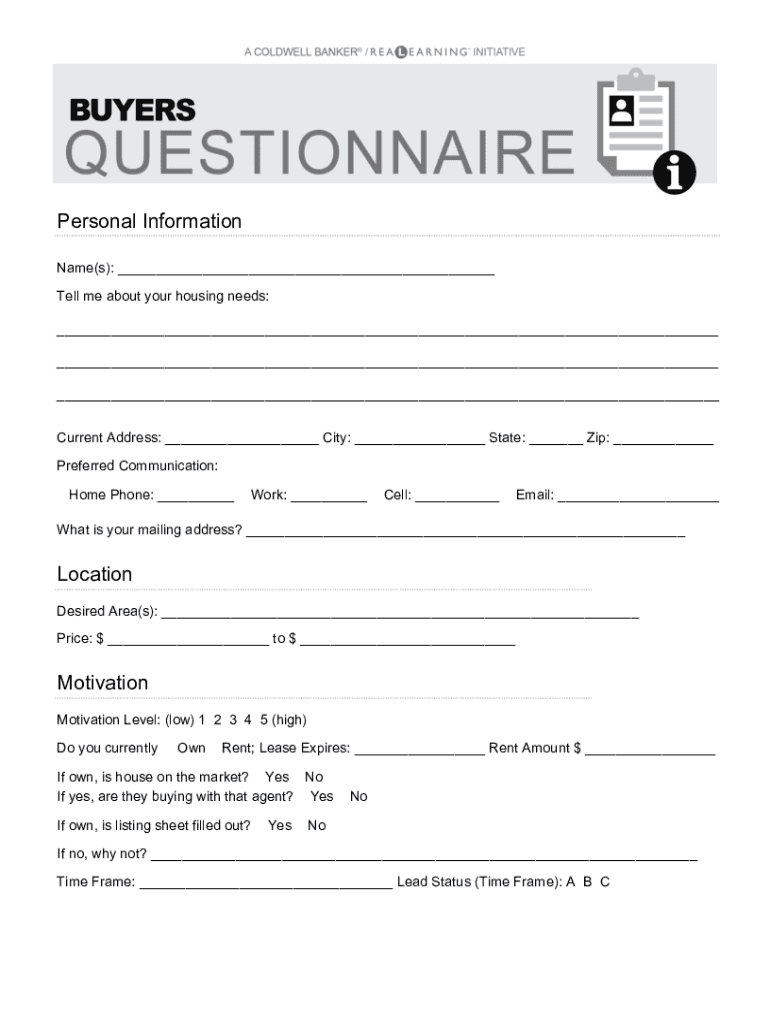 Personal Information Name(s): ___ Tell me about your housing needs: ___ ___ ___ Current Address: ___ City: ___ State: ___ Zip: ___ Preferred Communication: Home Phone: ___Work: ___Cell: ___Email:
