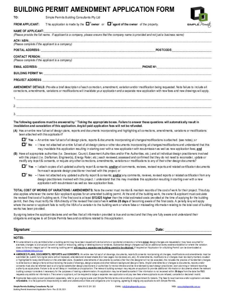 BUILDING PERMIT AMENDMENT APPLICATION FORM