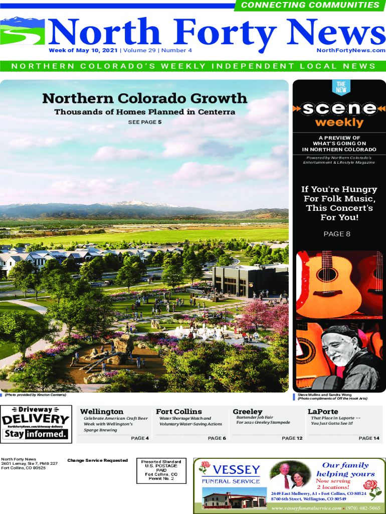 CONNECTING COMMUNITIESWeek of May 10, 2021 | Volume 29 | Number 4NorthFortyNews. Come O R T H E R N C O L O R A D O S W E E K LY I N D E P E N D E N T L O C A L N E WS Northern Colorado Growth Thousands