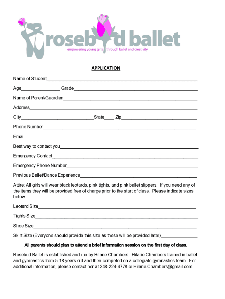 APPLICATION Name of Student___ Age___ Grade___ Name of Parent/Guardian___ Address___ City___State___ Zip___ Phone Number___ Email___ Best way to contact you___ Emergency Contact___ Emergency Phone