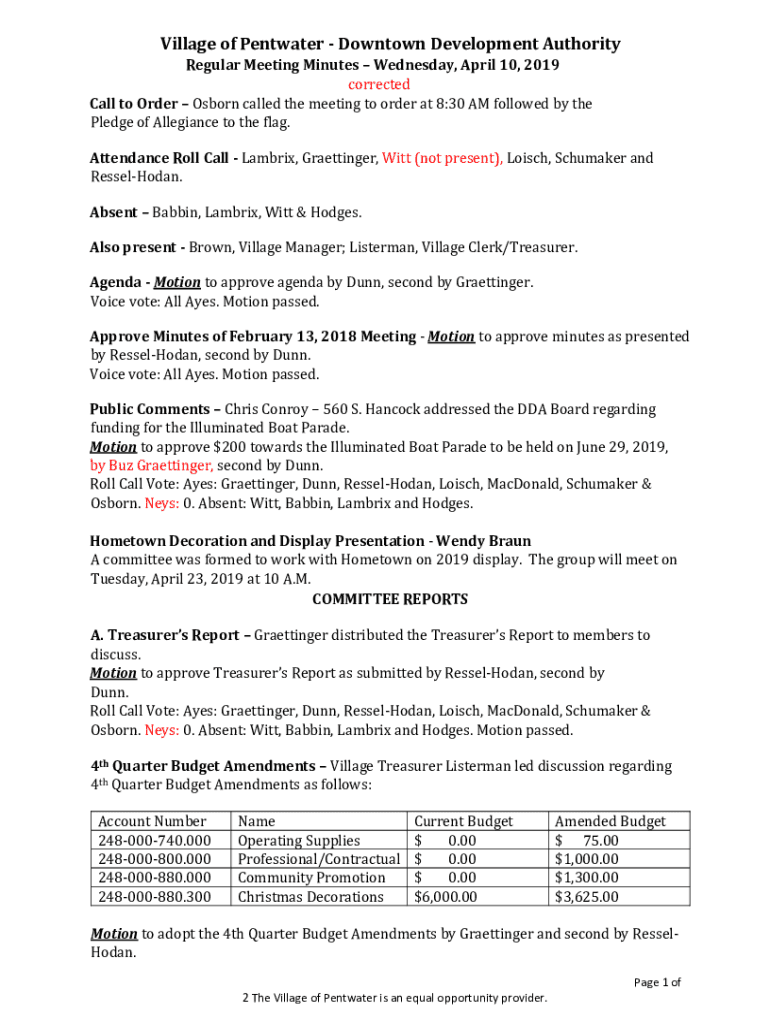 Regular Meeting Minutes Wednesday, April 10, 2019,
