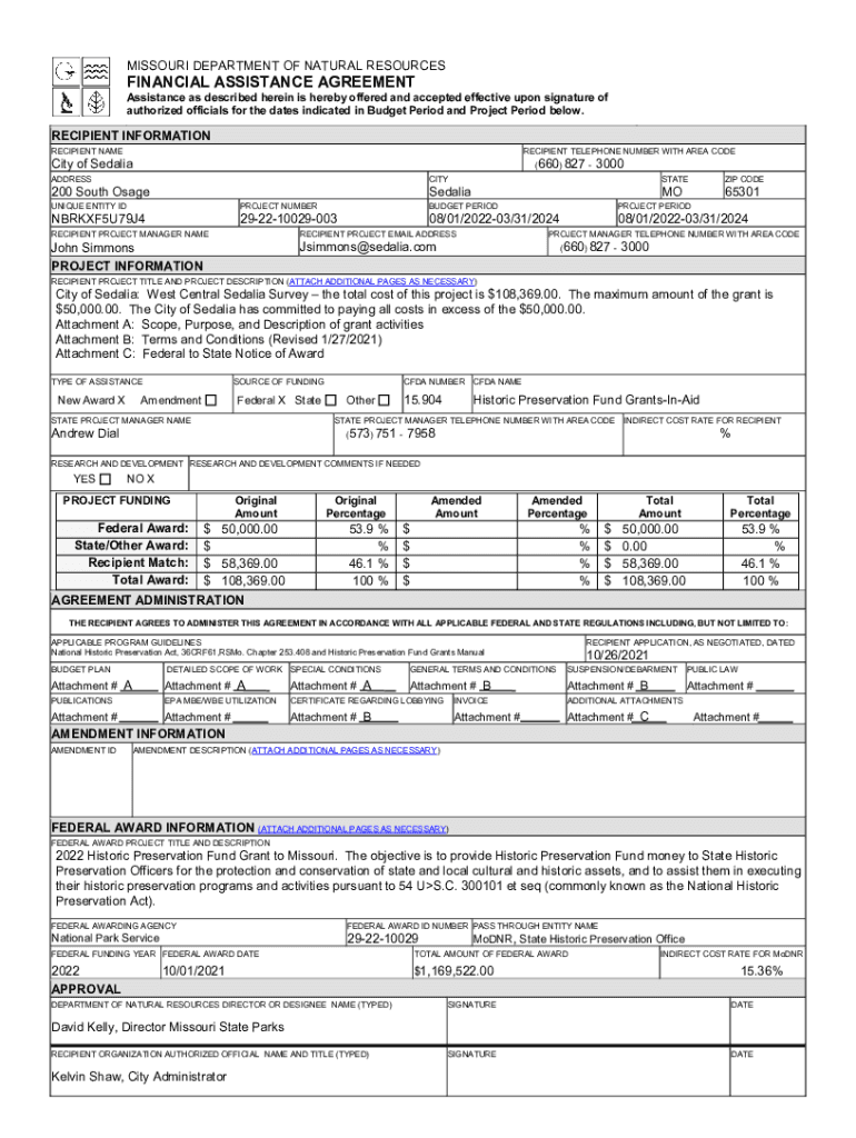 MISSOURI DEPARTMENT OF NATURAL RESOURCESFINANCIAL ASSISTANCE AGREEMENT
