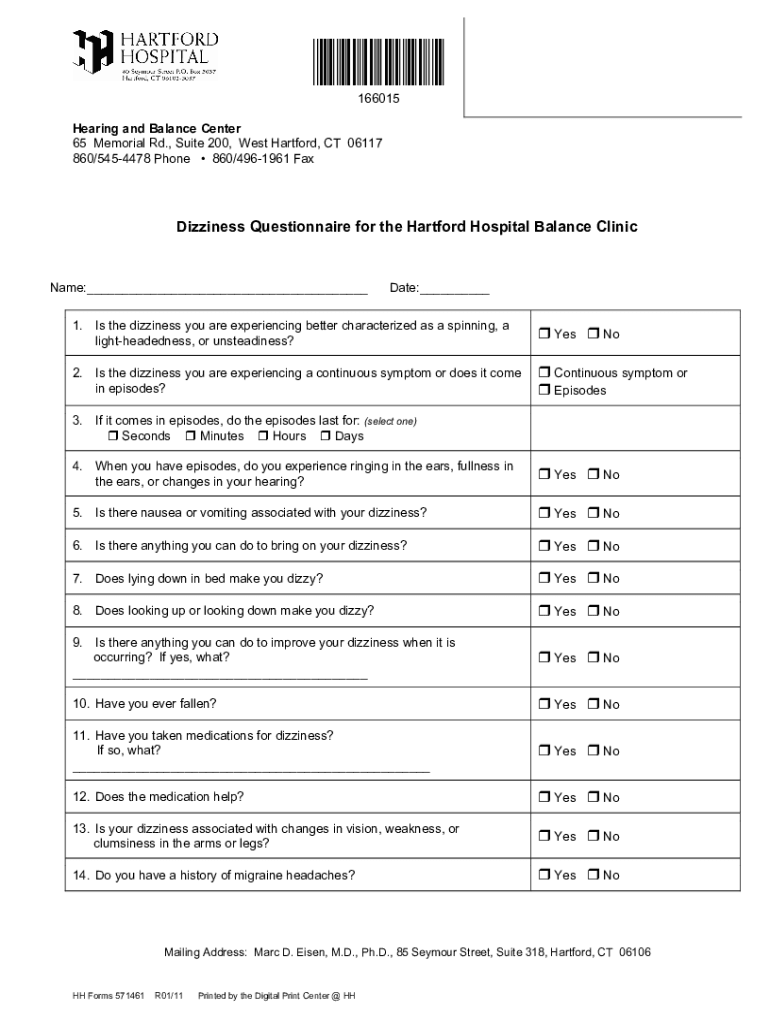 Get the free Dizziness Questionnaire for the Hartford Hospital Balance Clinic, #571461. Hartford ...