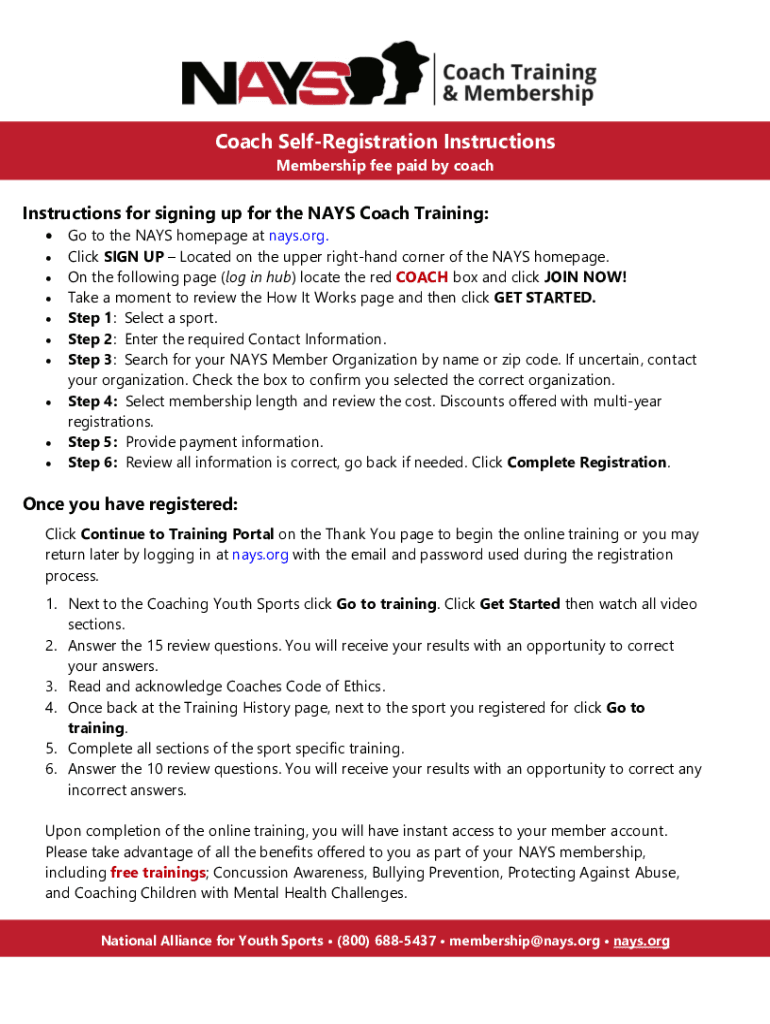 NAYS coach training self-registration is a process where coaches register themselves for training programs offered by the National Alliance for Youth Sports.