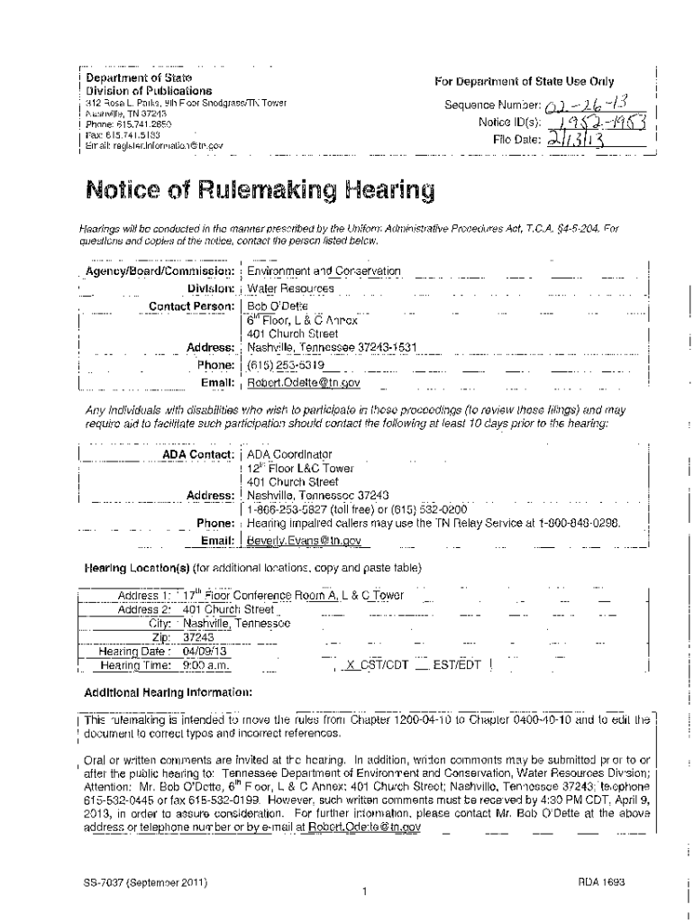 Department of State Division of Publications Department of State Use Only/3Sequence Number: () j ./J_fo312 Rosa L. Parks, 8th Floor Snodgrass Tower Nashville, TN 37243 Phone: 615.741.2650 Fax: 615.741.5133