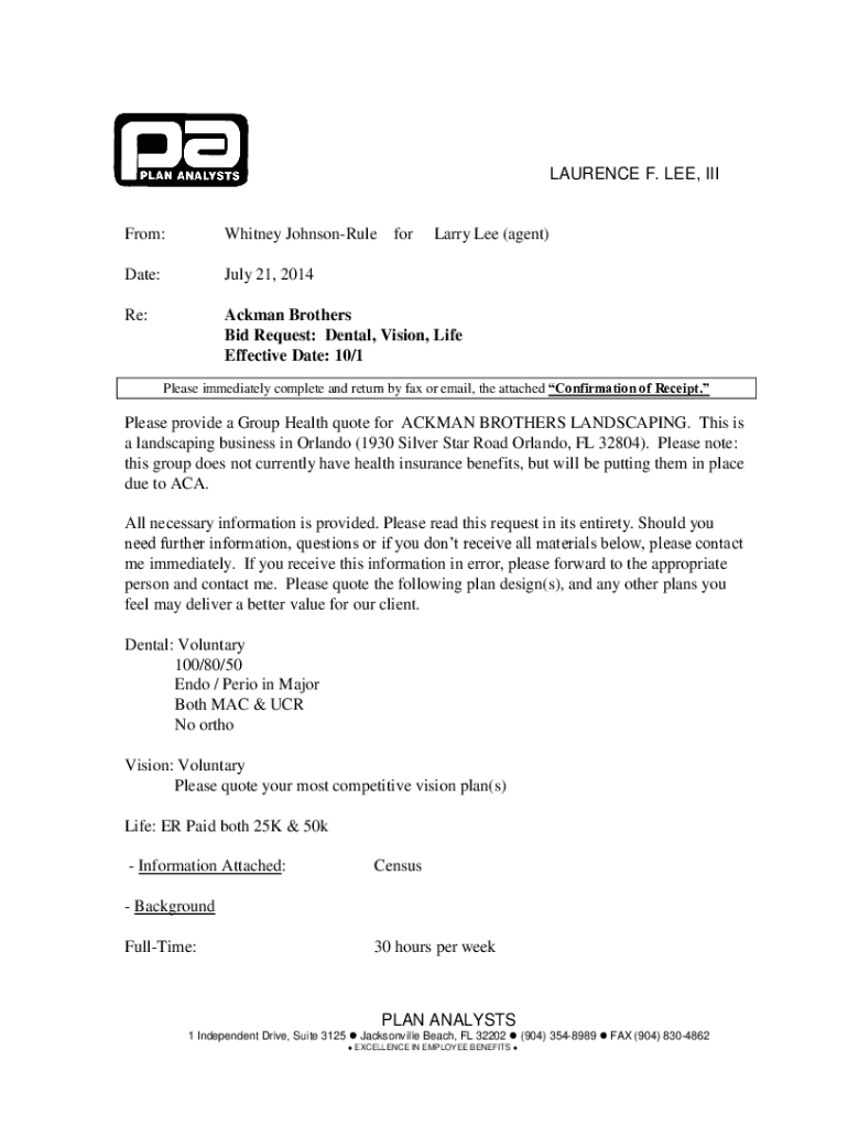 Bid Request: Dental, Vision, Life