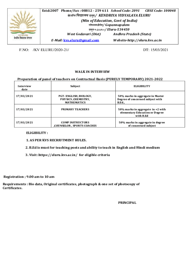 Get the free WALK-IN INTERVIEW NOTICE FOR SELECTION OF PANEL ...