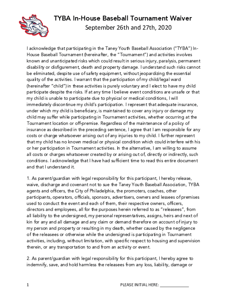 Get the free TYBA In-House Baseball Tournament Waiver September 26th ...