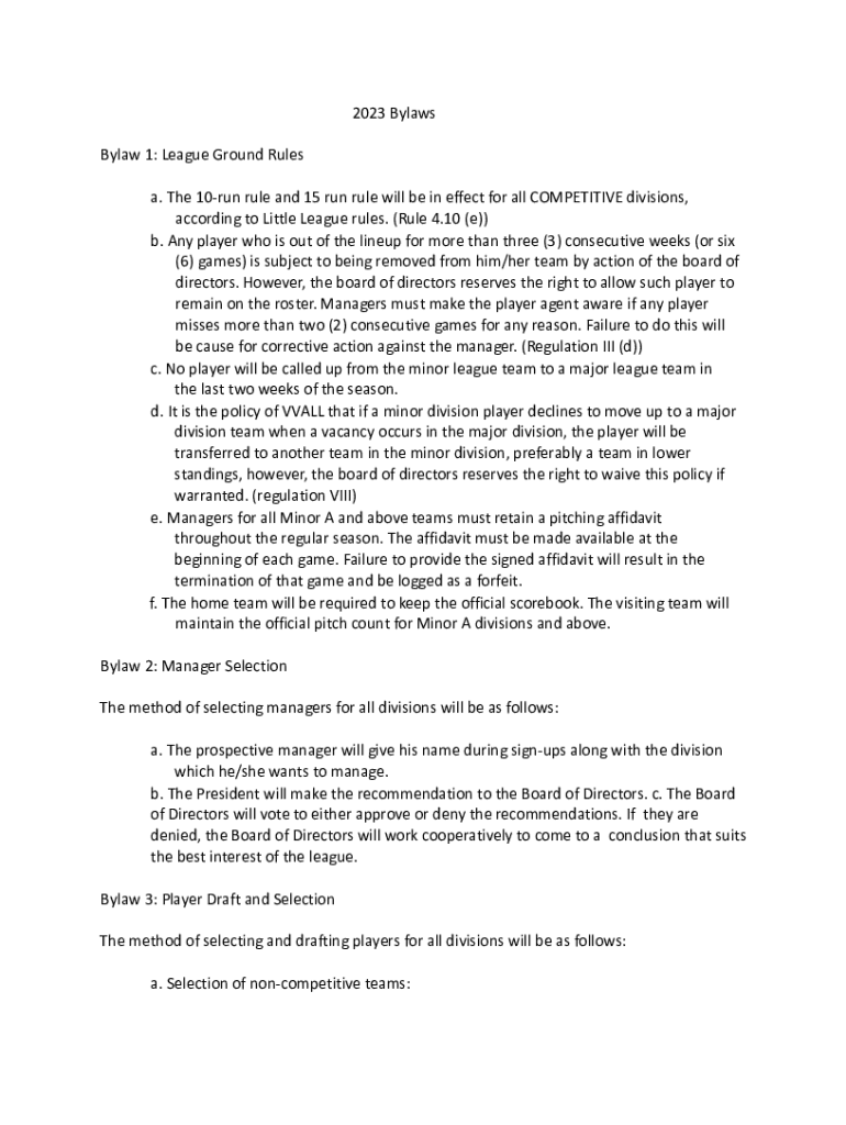 2023 Bylaws Bylaw 1: League Ground Rules a. The 10run rule and 15 run rule will be in effect for all COMPETITIVE divisions, according to Little League rules. (Rule 4.10 (e)) b. Any player who is out