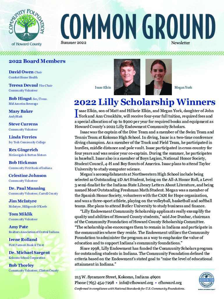 Newsletter Summer 20222022 Board Members David Owen Chair Comfort Home Health Teresa DePaul Vice Chair Isaac ElkinCommunity Volunteer Bob Hings Sec./Treas. Mid-America Beverage Mary Baker AndyMarkSteve