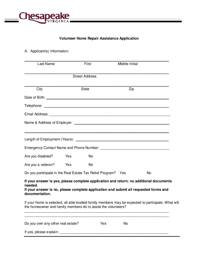 Get the free Volunteer Home Repair Assistance Application A. Applicant(s ...