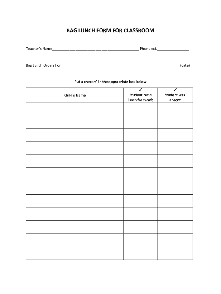 Get the free BAG LUNCH FORM FOR CLASSROOM