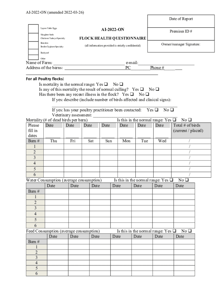 Get the free AI-2022-ON Commercial Flock Health Questionnaire.DOCX