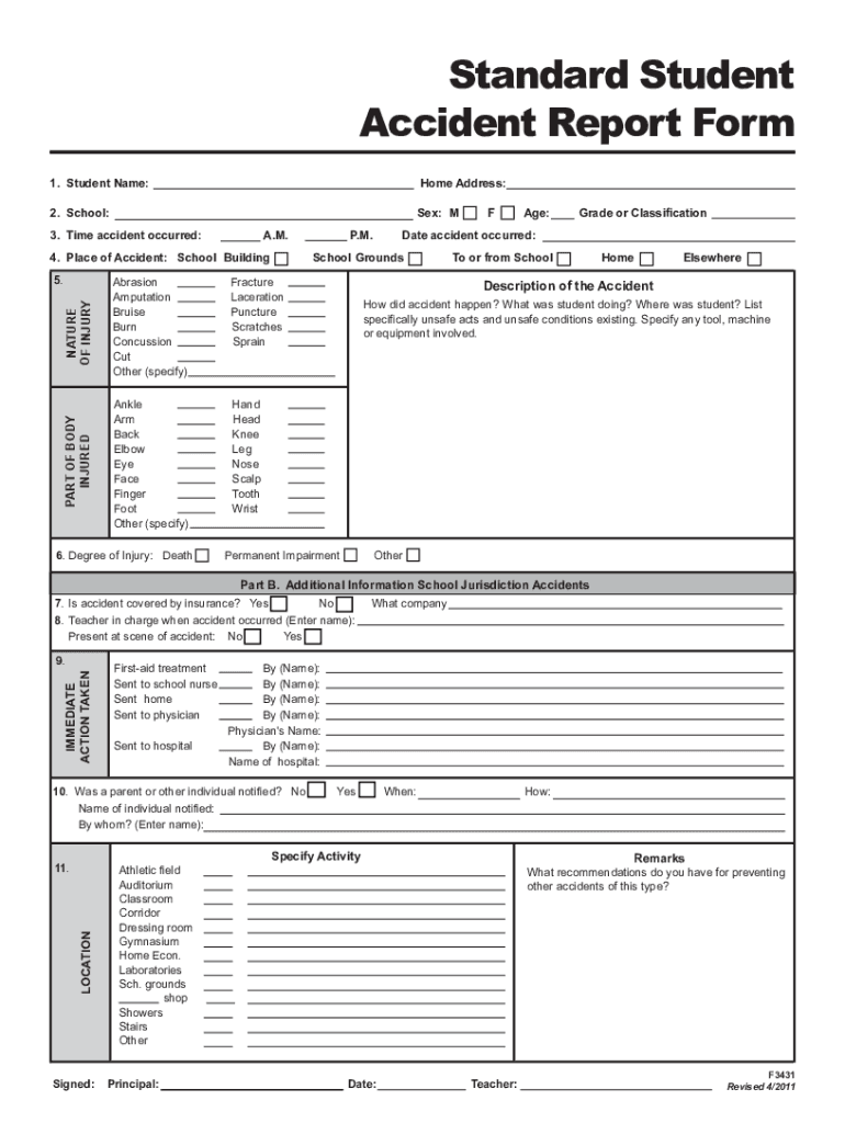 How to fill out standard student accident report