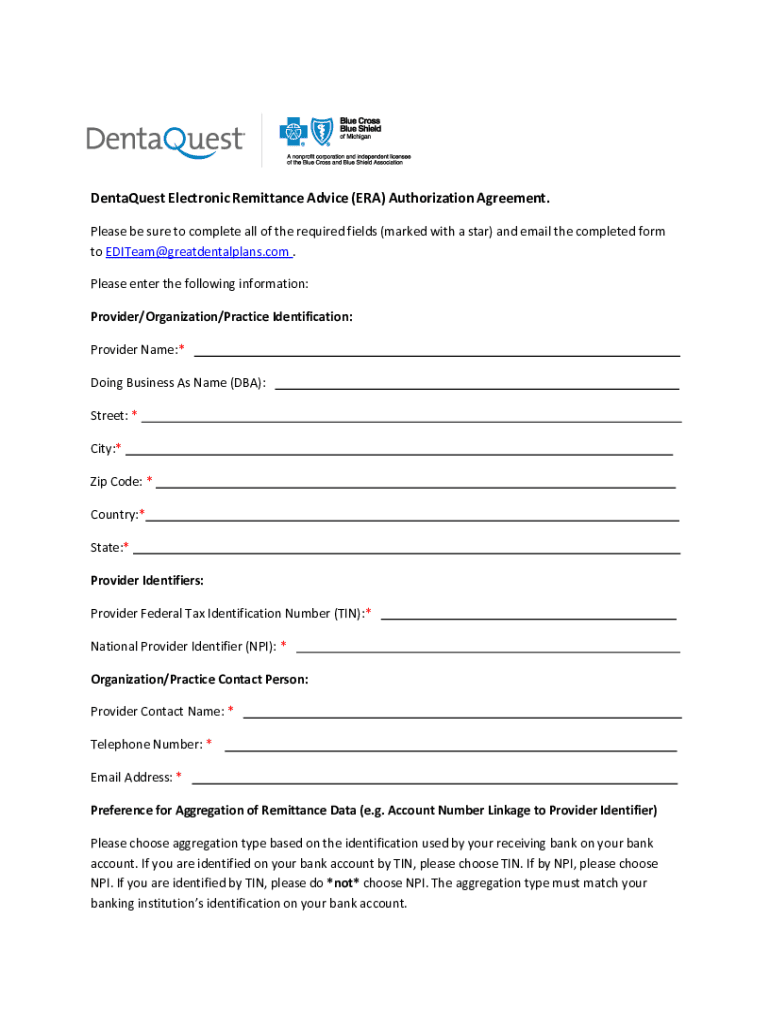 Payer ID: BBMDQMI BCBS DentaQuest Dental 835 EDI Enrollment Instructions: Please save this document to your computer. Open the file in the Adobe Reader program and type directly onto the form. Complete