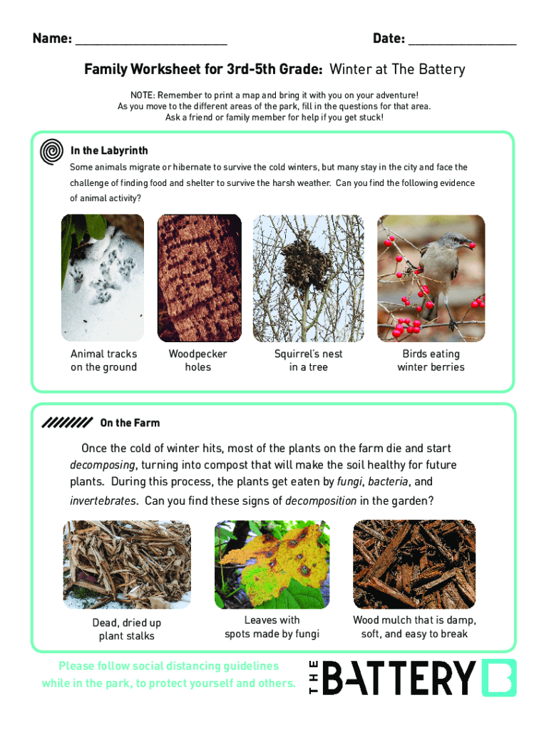 Get the free Date: - Family Worksheet for 3rd-5th Grade: Winter at The Battery