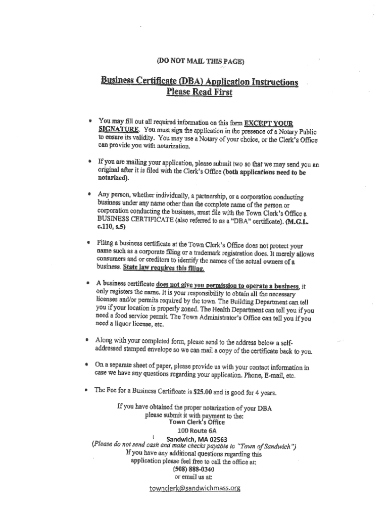 For Clerks Use Only No: 23 Sent to Building Dept Date___THE COMMONWEALTH OF MASSACHUSETTS TOWN OF SANDWICH BUSINESS CERTIFICATE Date:___, 2023In conformity with the provisions of Chapter one hundred