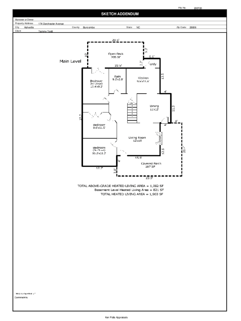 File No.200720SKETCH ADDENDUM Borrower or Owner Property Address City Client174 Dorchester Avenue CountyAshevilleBuncombeStateTammy Todd Ken Potts AppraisalsNCZip Code28806File No.200720SKETCH ADDENDUM