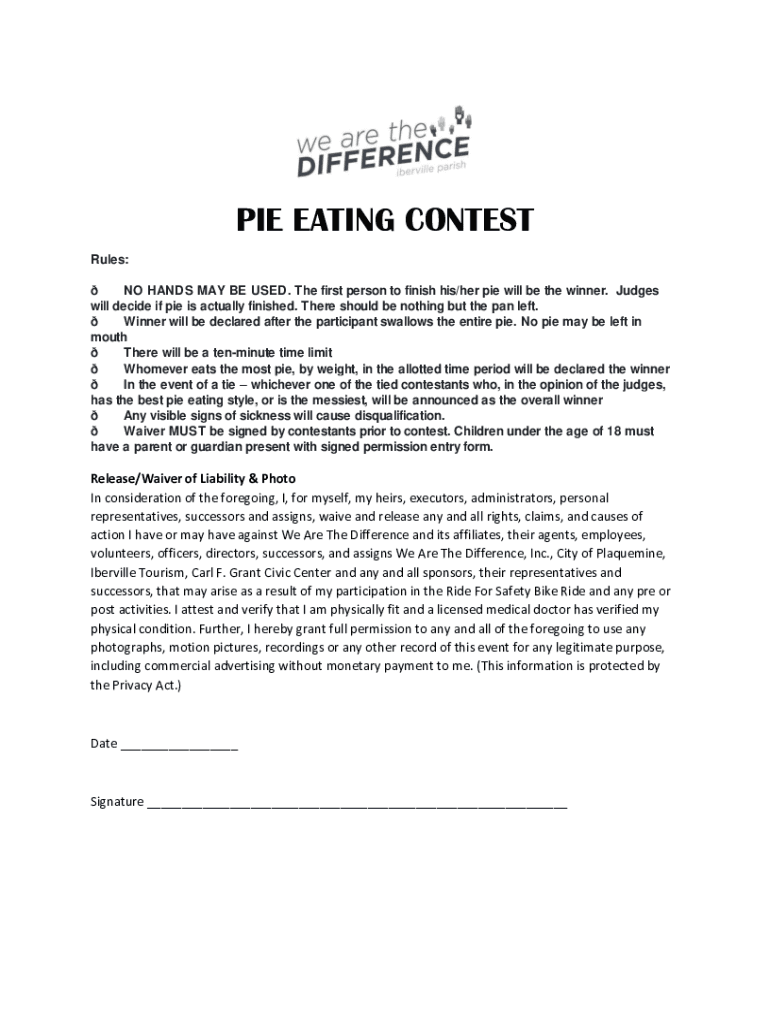 Get the free Pie Eating Contest Rules and Waiver - Cumming Fairgrounds
