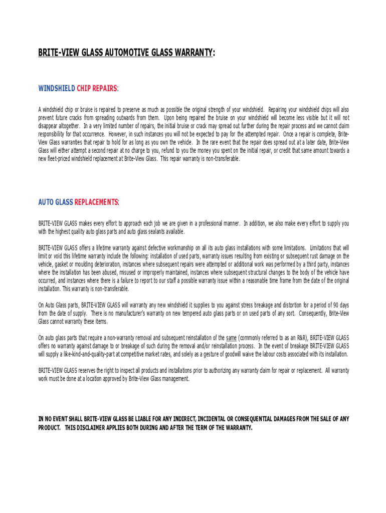 Fill out your brite-view glass windshield and online with pdfFiller!
