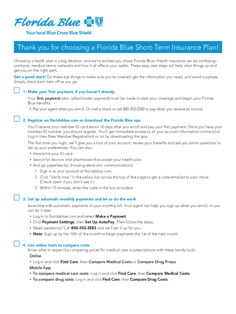 Thank you for choosing a Florida Blue Shorter Insurance Plan! Choosing a health plan is a big decision, and were excited you chose Florida Blue! Health insurance can be confusing contracts, medical