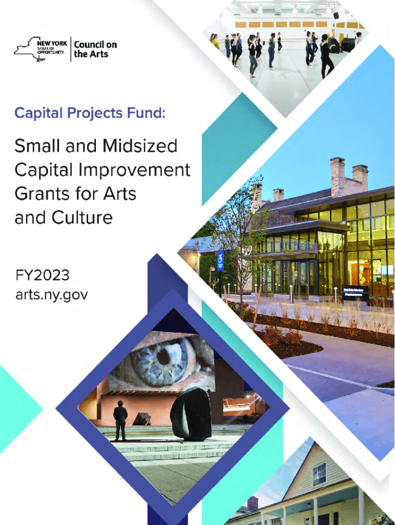 New York State Council on the Arts (NY SCA)Capital ProjectsNYSCA SMALL AND MIDSIZED CAPITAL IMPROVEMENT GRANTS FOR ARTS AND CULTUREApplication Deadline: January 12, 2023, at 4PM The NY SCA Small and