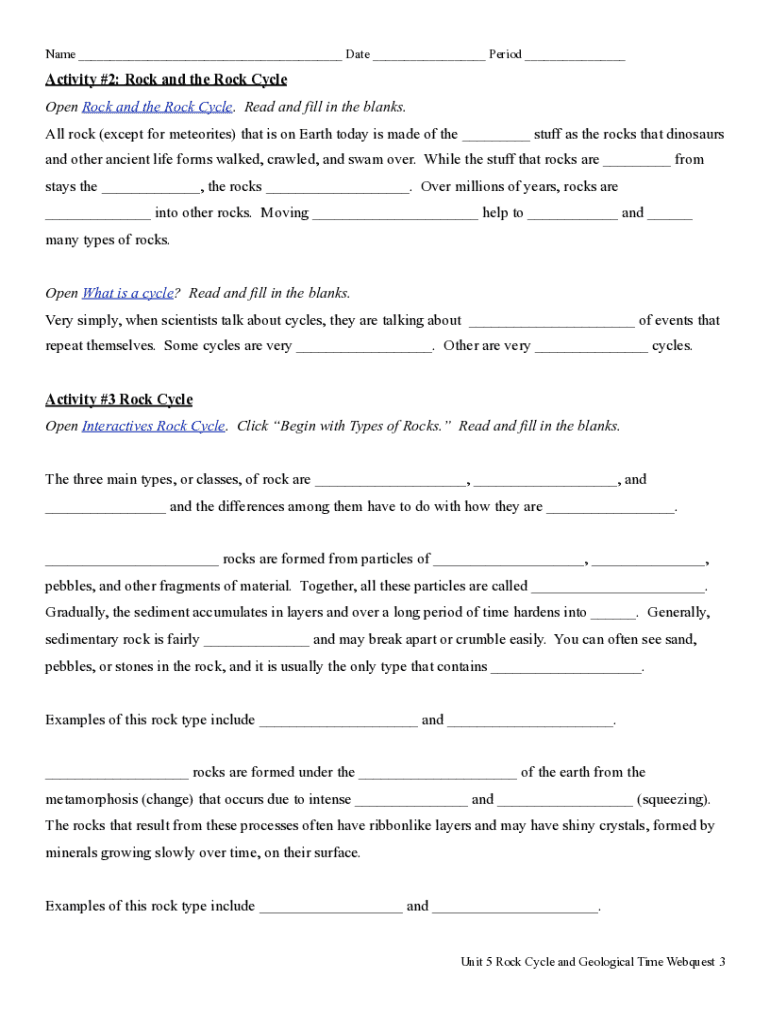 Name ___ Date ___ Period ___Activity #2: Rock and the Rock Cycle Open Rock and the Rock Cycle. Read and fill in the blanks. All rock (except for meteorites) that is on Earth today is made of the ___