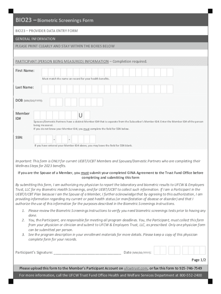 Get the free BIO23 Biometric Screenings Form - UFCW Trust