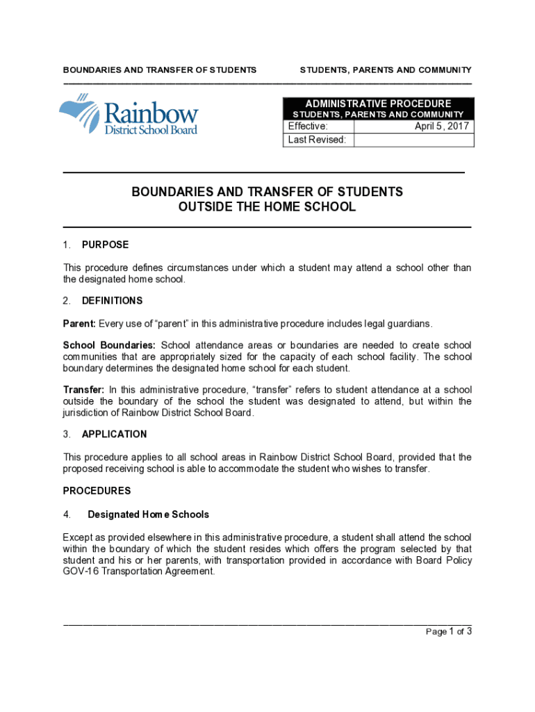 BOUNDARIES AND TRANSFER OF STUDENTS, PARENTS AND COMMUNITY