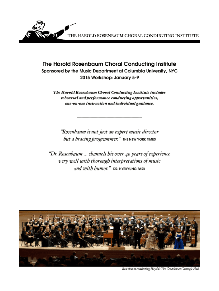 The Harold Rosenbaum Choral Conducting Institute Sponsored by the Music Department at Columbia University, NYC 2015 Workshop: January 59 The Harold Rosenbaum Choral Conducting Institute includes rehearsal