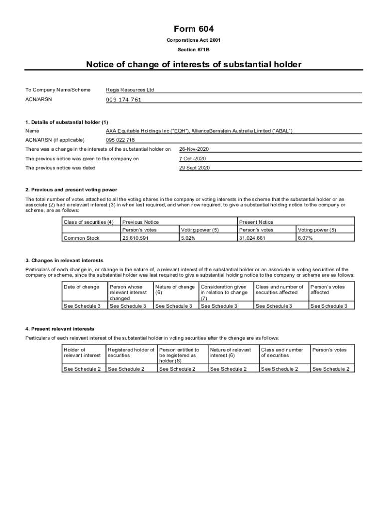 Get the free Notice of change of interests of substantial holder - AFR