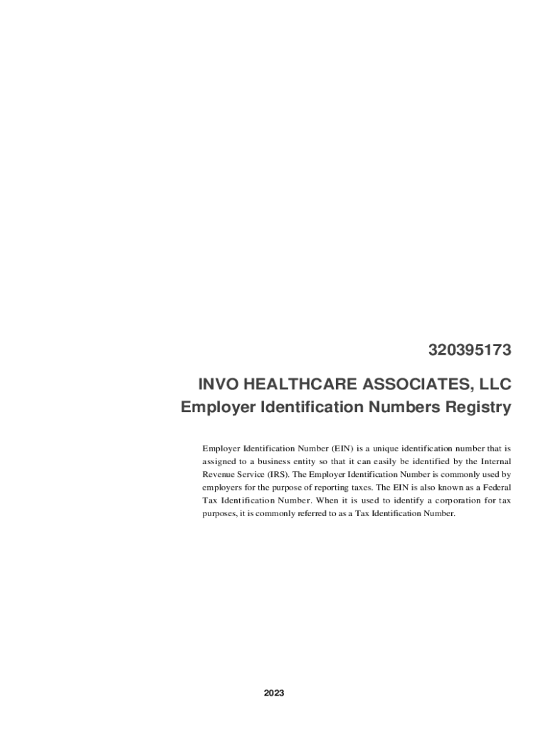 Get the free TAX ID (EIN) - INVO HEALTHCARE ASSOCIATES, LLC