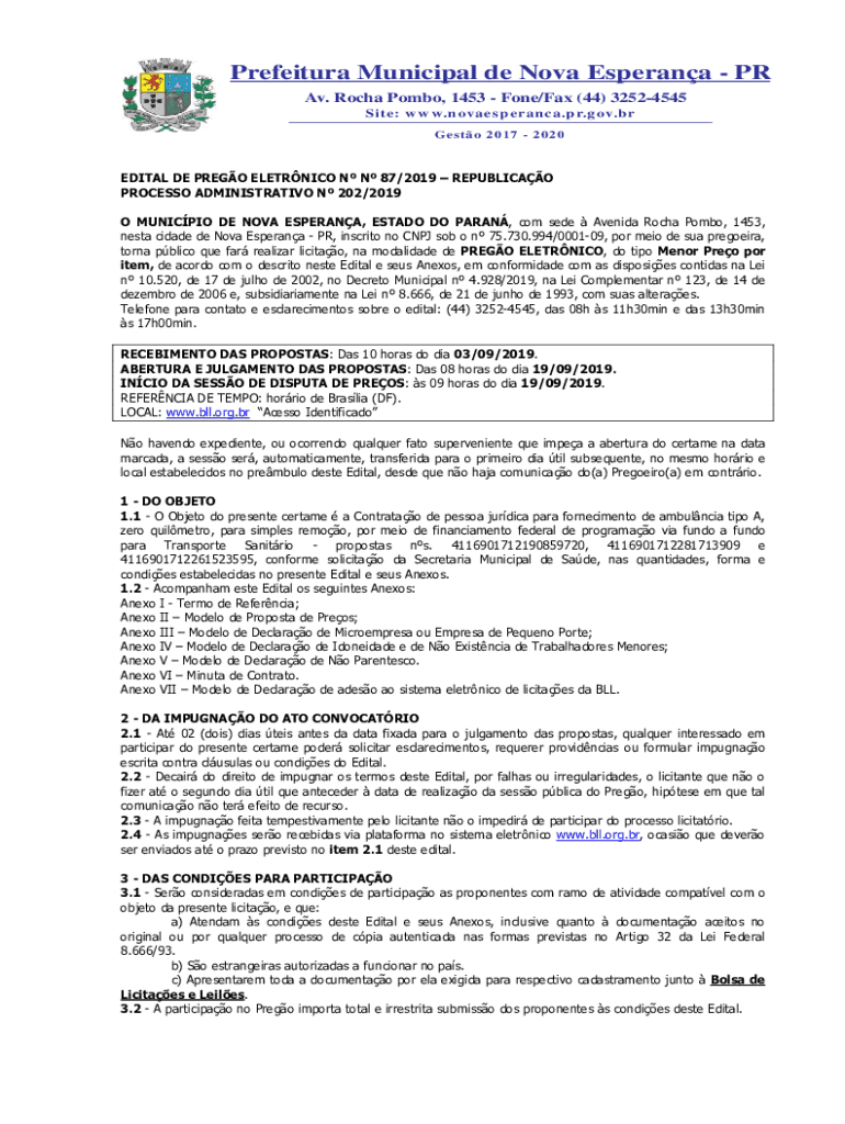 G e st o 20 17 2 020EDITAL DE PRESO ELECTRIC N 87/2019 REPUBLICAN