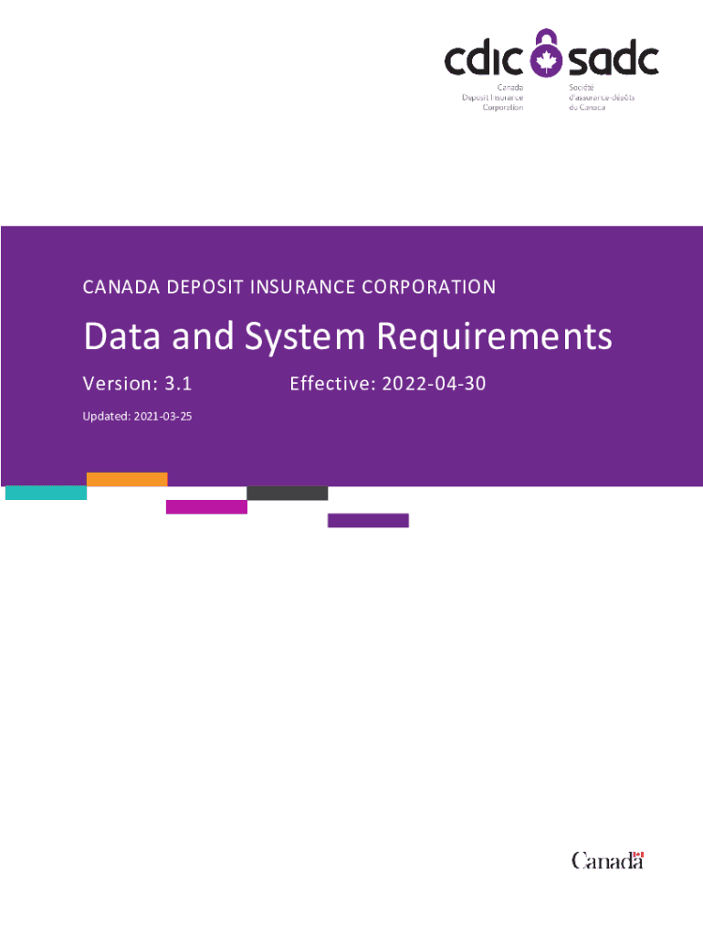 CANADA DEPOSIT INSURANCE CORPORATIONData and System Requirements Version: 3.1 Updated: 20210325Effective: 20220430UnclassifiedCDIC Data & System Requirements, v3.1 www.cdic.ca www.sadc.caContents