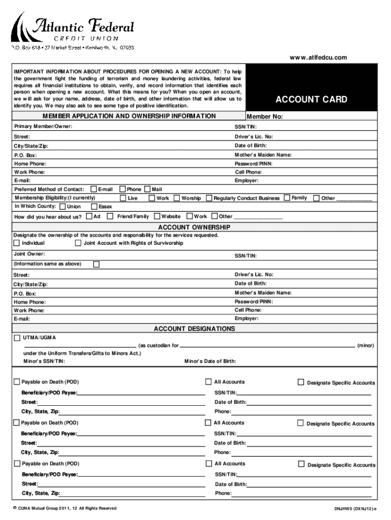 Get the free New Membership Application - Atlantic Federal Credit Union