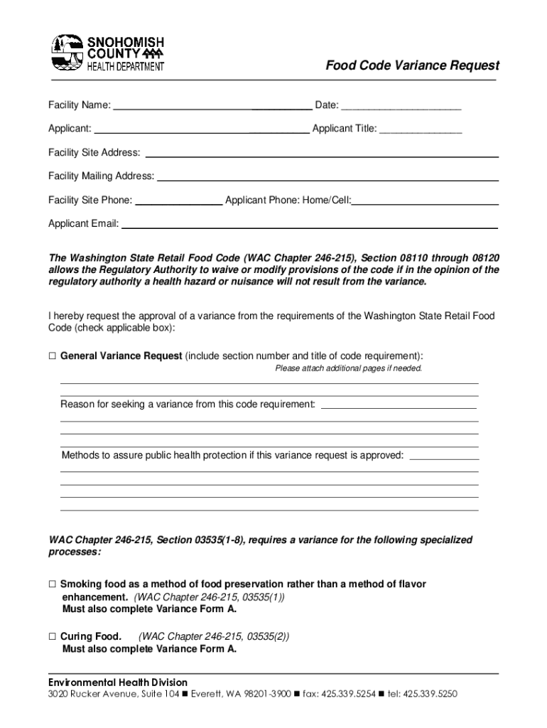 WA Food Code Variance Request - Snohomish County 2018-2025 free printable template