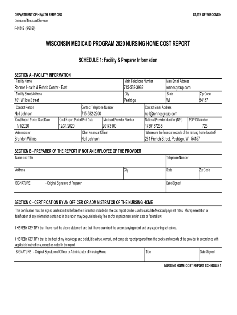 Division of Medicaid ServicesSTATE OF WISCONSINF01812 (9/2020)WISCONSIN MEDICAID PROGRAM 2020 NURSING HOME COST REPORT
