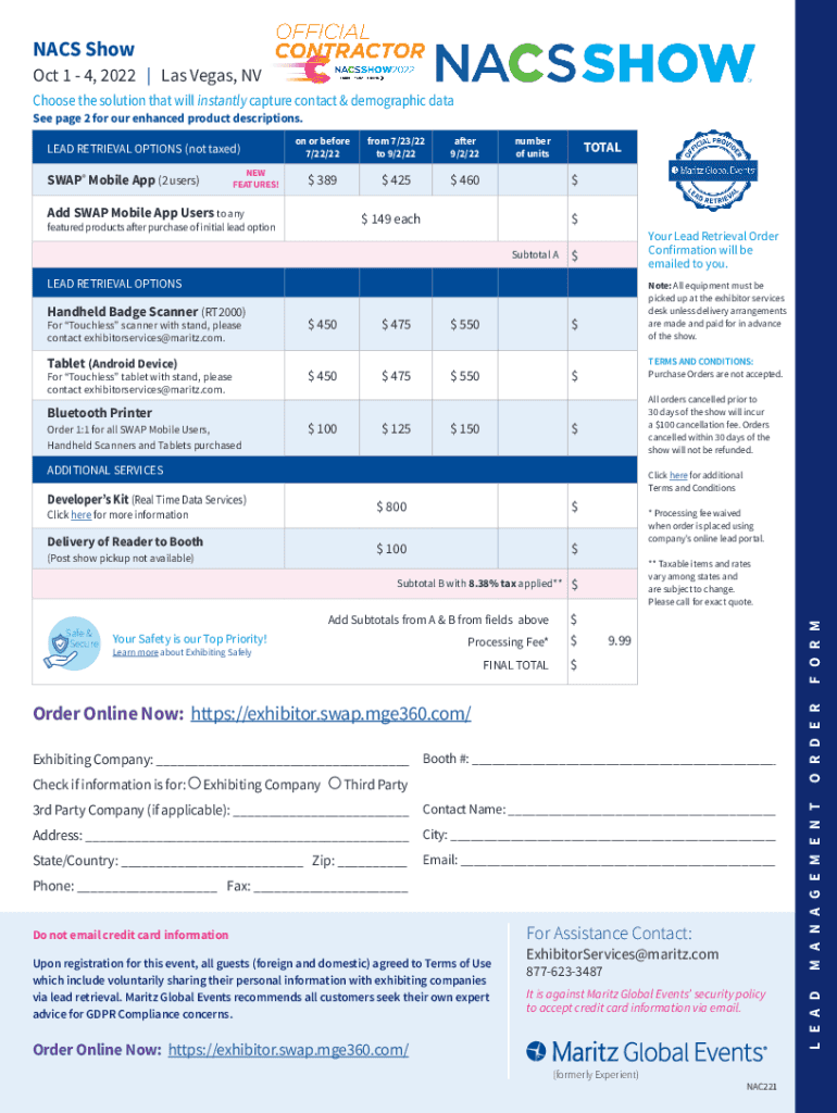ACS Show Oct 1 4, 2022 | Las Vegas, NV Choose the solution that will instantly capture contact & demographic data See page 2 for our enhanced product descriptions. From 7/23/22 to 9/2/22after 9/2/$$$22389425