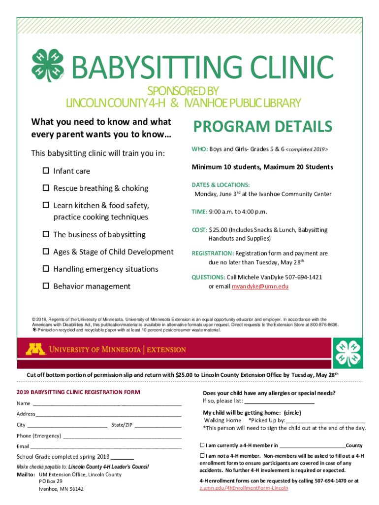 This babysitting clinic will train you in:PROGRAM DETAILS