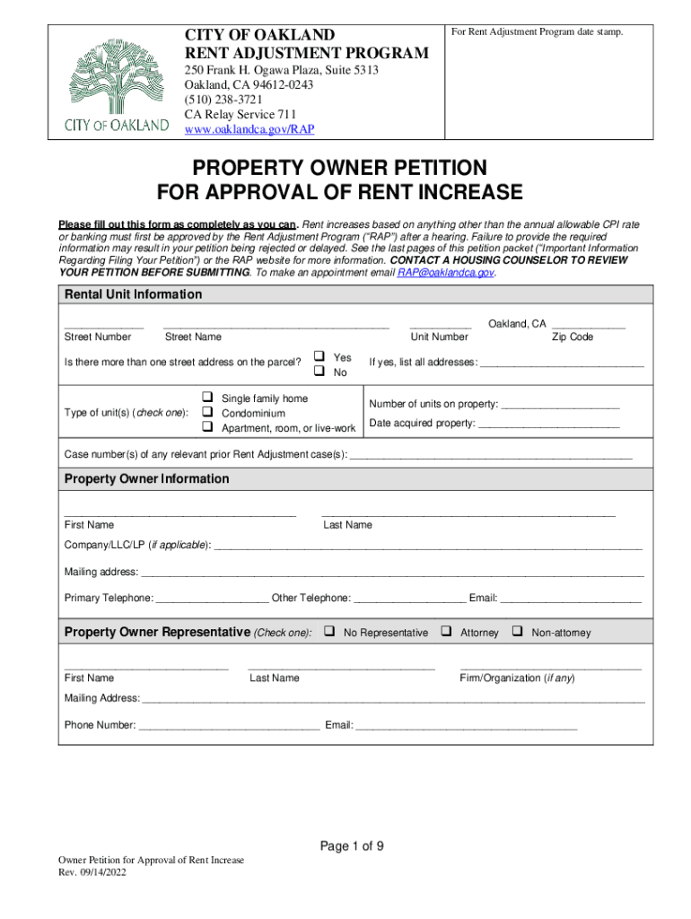 Get the free File a Property Owner Petition - City of Oakland