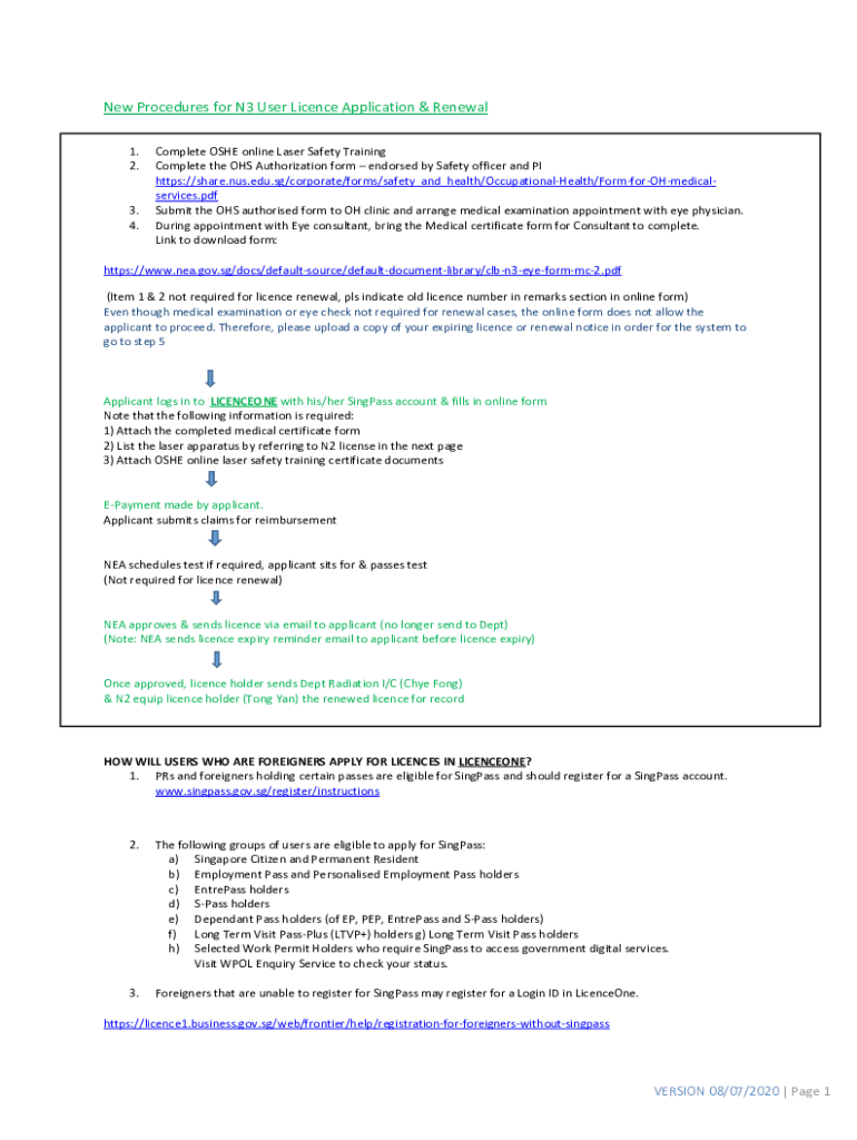 New Procedures for N3 User License Application & Renewal 1. 2. 3. 4. Complete SHE online Laser Safety Training Complete the OHS Authorization form endorsed by Safety officer and PI https://share.nus.edu.sg/corporate/forms/safety_and_health/OccupationalHealth/FormforOHmedicalservices.pdf