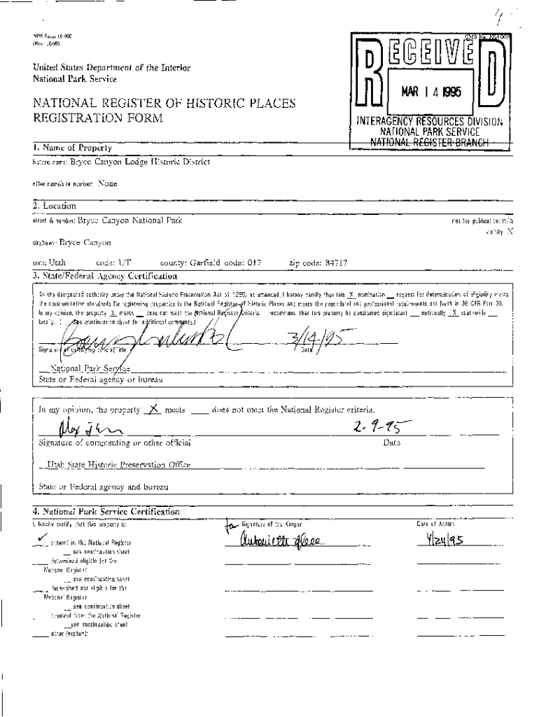 NFS Form 10900 (Rev. 1090)United States Department of the Interior National Park ServiceNATIONAL REGISTER OF HISTORIC PLACES REGISTRATION FORM 1. Name of Property MAR 141995 INTERAGENCY RESOURCES